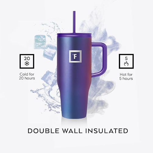Pilot Insulated Mug /Straw & Flip Cap Lids - Cup Holder Bottle for Hot, Cold Drink - Leak-Proof - Water, Coffee Portable Travel Mug - Aurora, 40 Oz